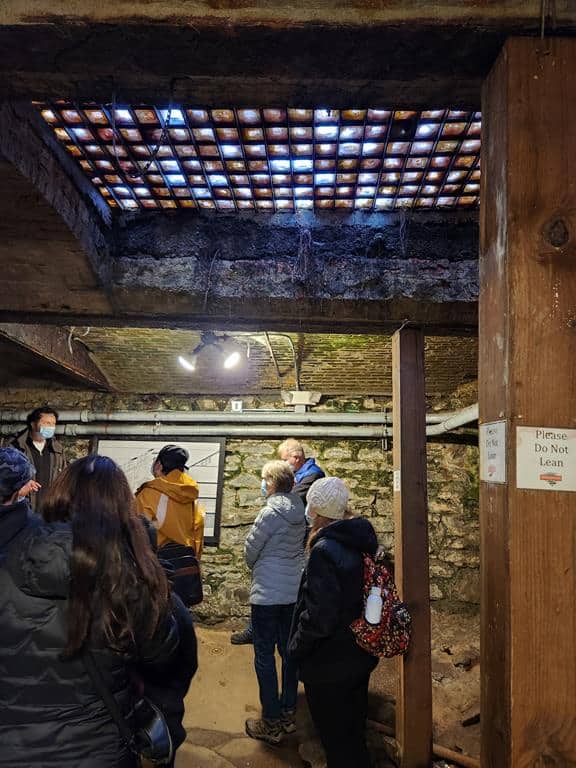 O subterrâneo é iluminado artificialmente e em alguns pontos têm claraboias por onde entra uma certa luz natural (pouca coisa). Durante o trajeto dá para ver perfeitamente os restos da cidade soterrada e imaginar como ela era. Janelas, portas, tubulações, placas das ruas, etc. Tem até os restos de um antigo banheiro montadinho, com vaso e pia!